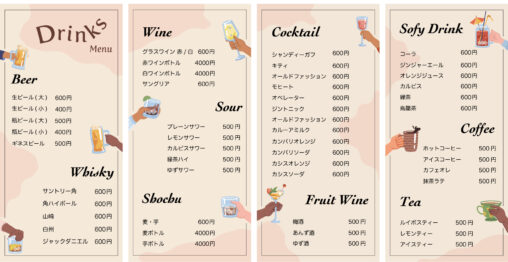 おしゃれでカジュアルなカフェをイメージしてドリンクメニュ…