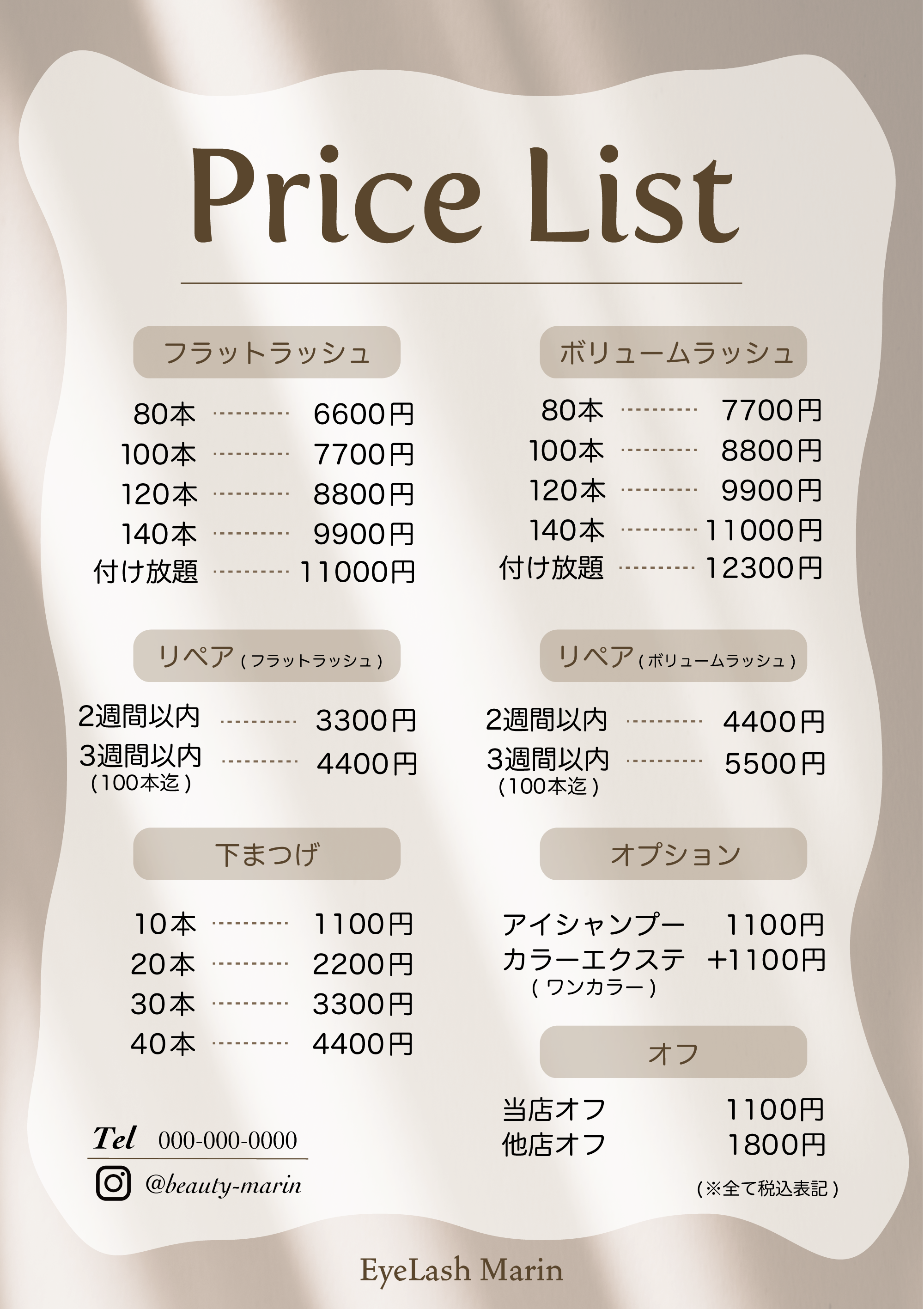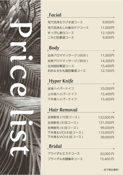 エステサロンのプライスリストを制作しました。サロン名やロ…