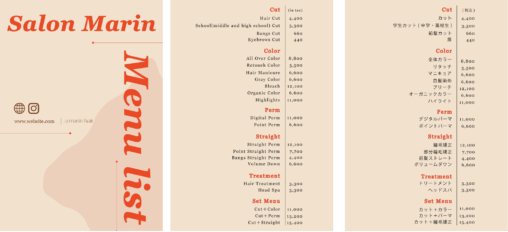 美容室の料金表を制作しました。表面(1枚目)にサロン名・…